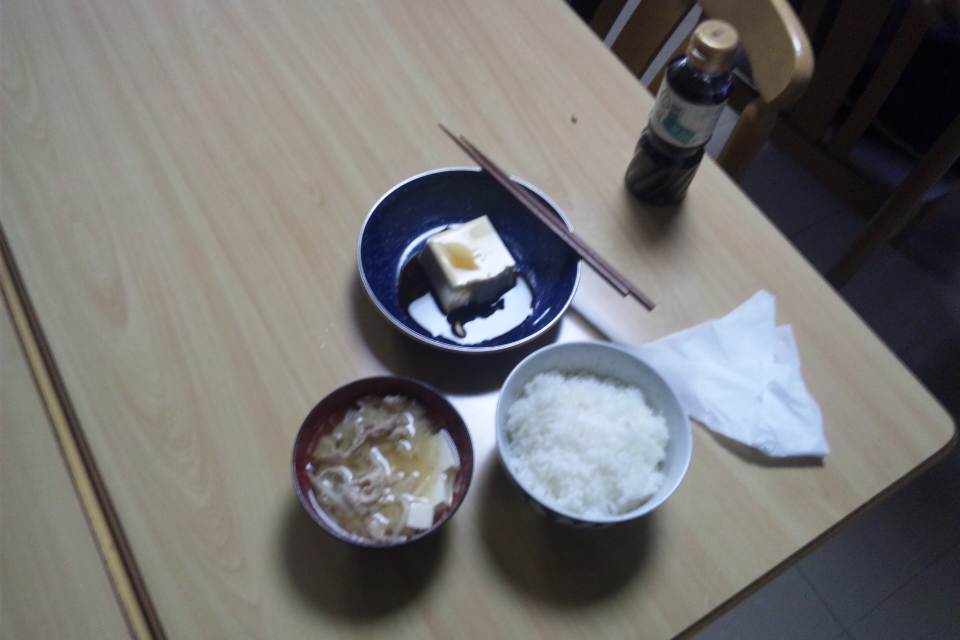 ご飯・味噌汁・冷奴の夕食。